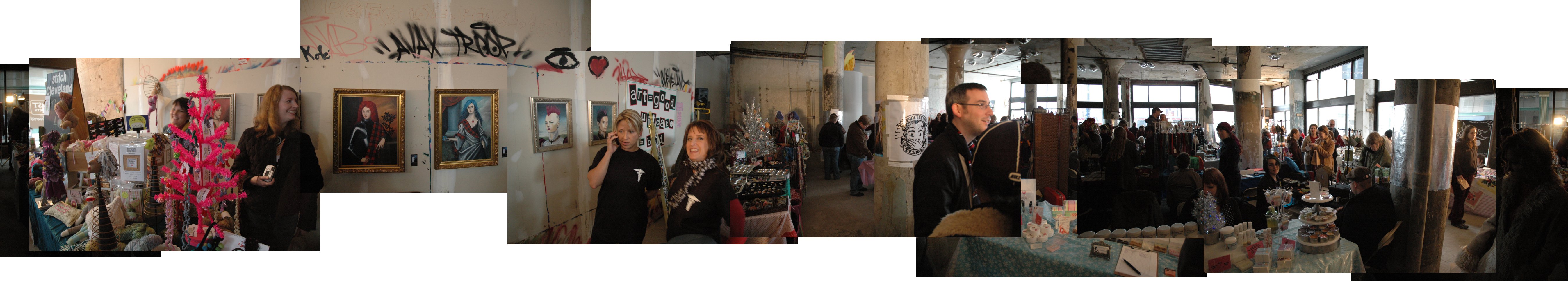 One environmental fundamental is NOT consuming the wrong things wrongly or unnecessarily - when you must consume then do so as smartly, locally and close to good sources as possible. In that sense, buying from artists and crafts people can't be beat, and there are many opportunities these days to buy local arts and crafts for gifts for the "holiday" season (when all are encouraged to over-consume at all levels). One very cool such shoppening, that brought a huge crowd together at E4th and Prospect, this weekend, was the Bazaar Bizarre... featured on today's header (full size here).