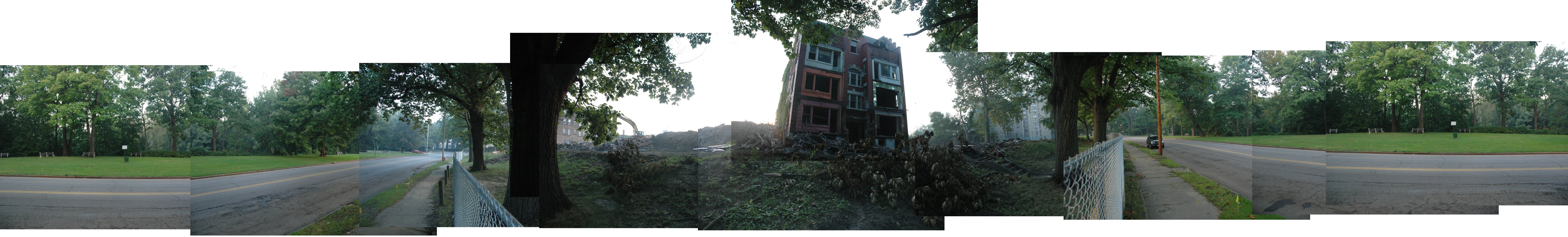 I stood there alone, in one of the world's most beautiful places, as commuting suburbanites whizzzed by, and I thought of the last photos I took near here, of the demolition of historic apartment buildings on East Boulevard, that were part of this park's historic fabric and culture, quietly demolished for parking lots, for the whizzzzzing commuters (Full size images: above and below).